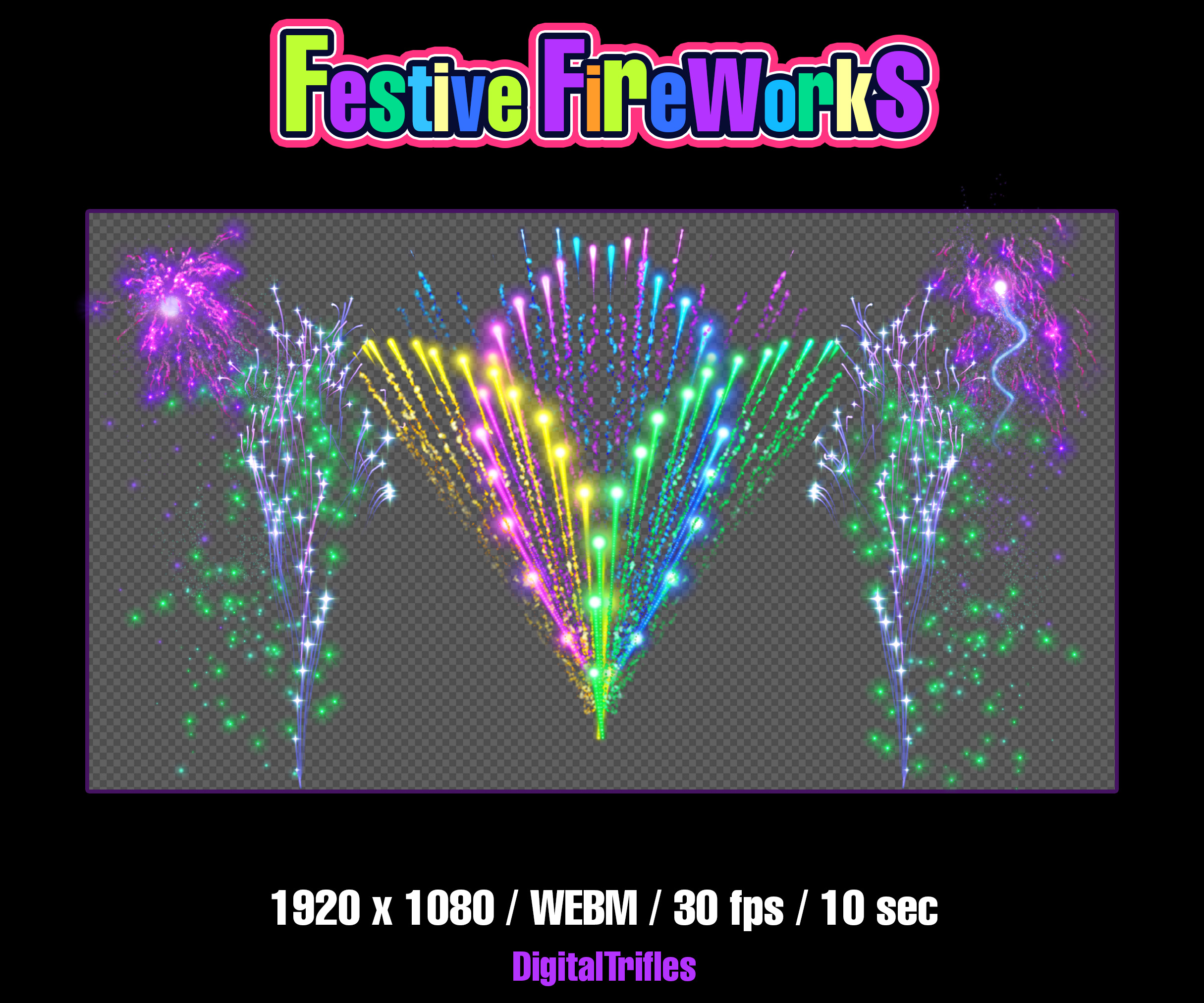Animated beautiful fireworks, Twitch alert, stream overlay. Festive decoration for streamers and VTubers, fullscreen video effect with transparent background and sound.